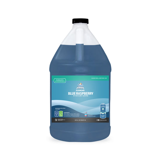 It's easy to make gallons of slushies with our delicious base syrup. Simply mix one cup of syrup with three cups of water for the perfect slushie every time.